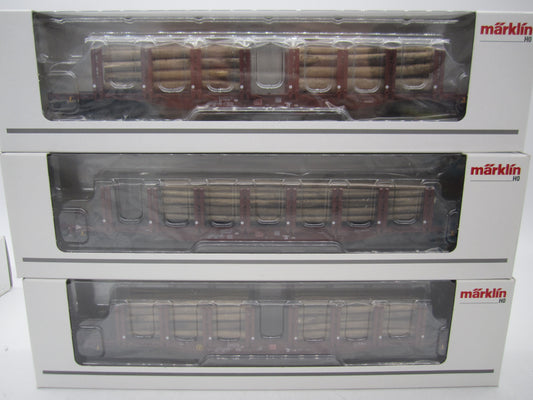 Märklin H0 - 47146 - 3-delige set van 4-assige rongenwagen, met houtlading van de DB