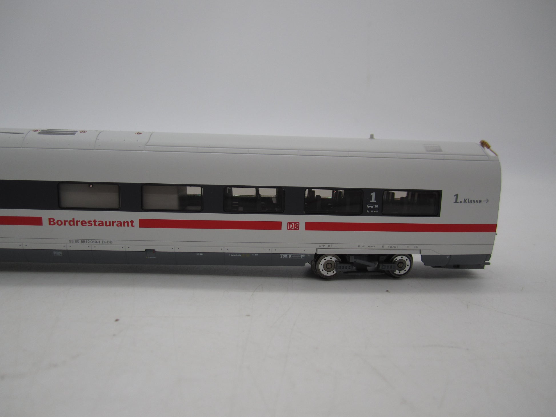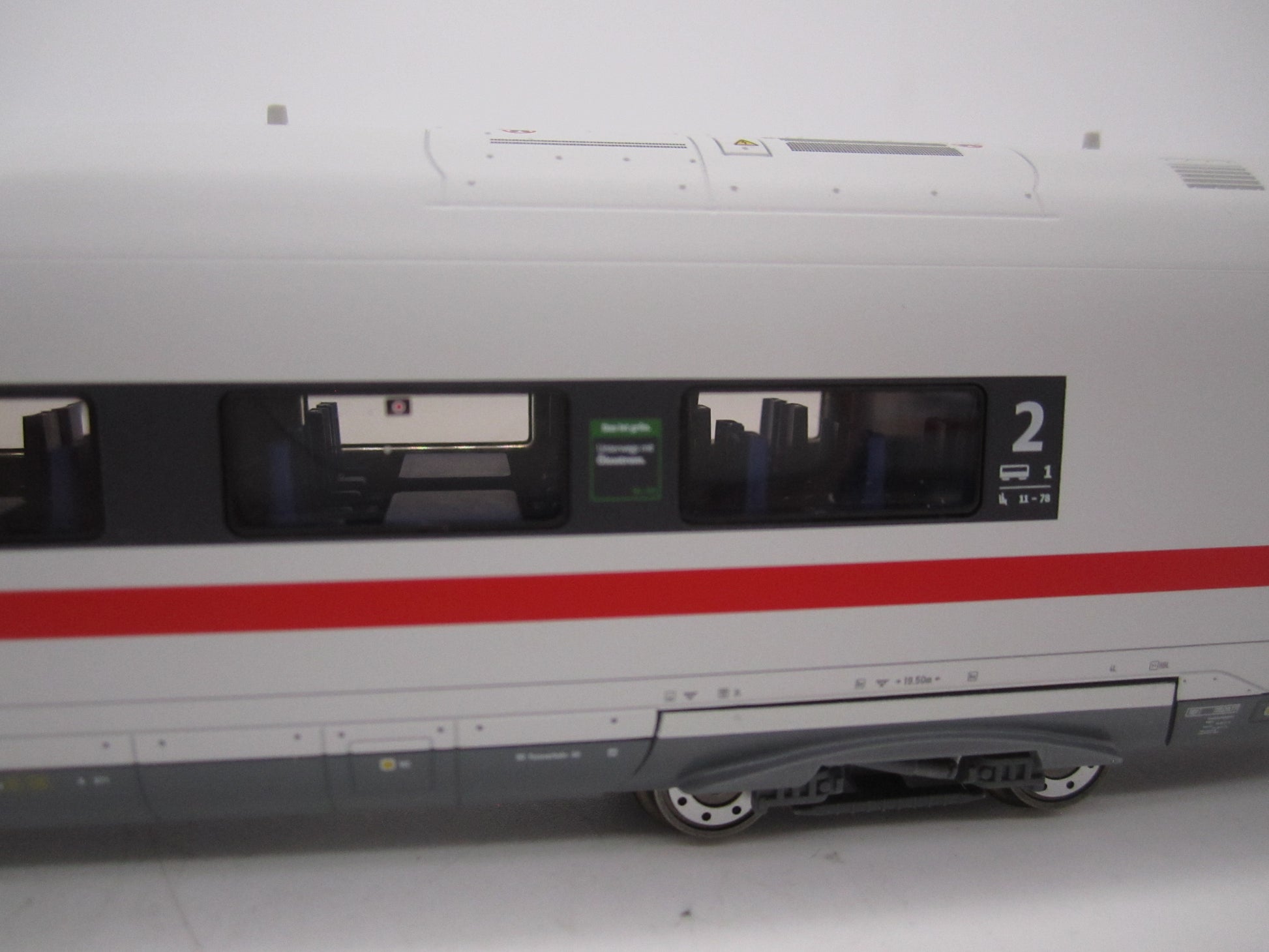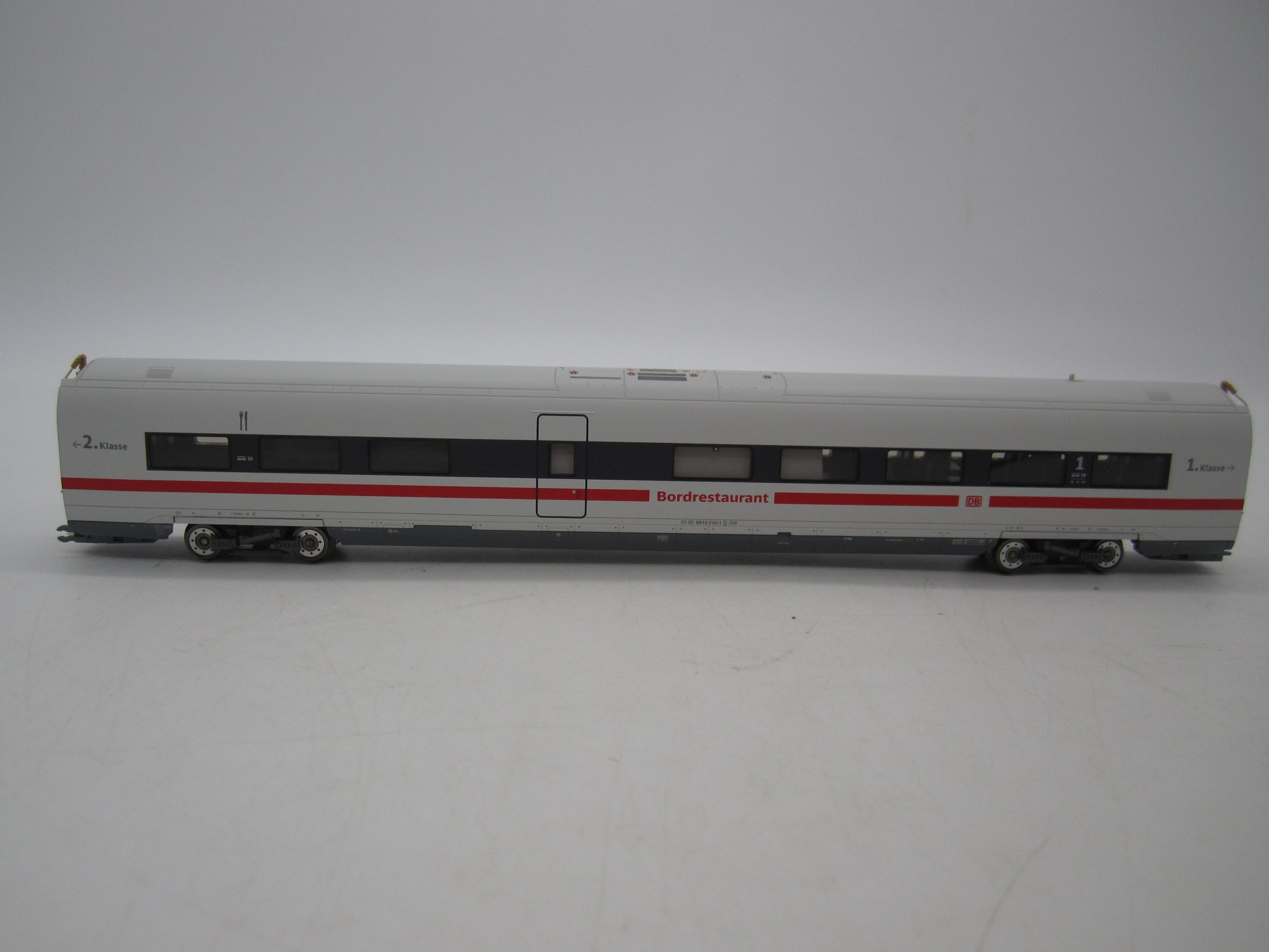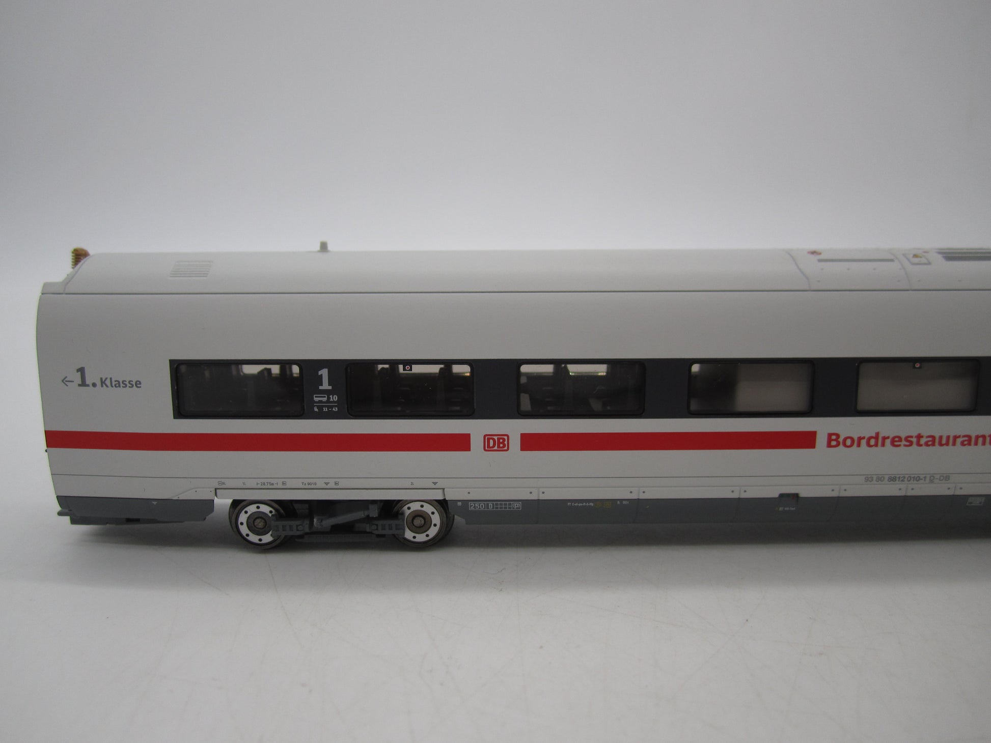 Met digitale decoder mfx+ en uitgebreide geluids- en lichtfuncties. Geregelde hoogvermogenaandrijving met vliegwiel, centraal in de boordrestaurantwagen ingebouwd. Alle 4 assen in beide draaistellen cardanaangedreven. Antislipbanden. Machinistencabines in de eindwagens met interieur. Met de rijrichting wisselende stroomvoorziening, telkens via de motorwagen vooraan. Speciale kortkoppelingen met schaargeleiding. Met de rijrichting wisselend driepuntsfrontsein en twee rode sluitseinen in conventioneel bedrijf, digitaal schakelbaar. Standaard ingebouwde binnenverlichting. Binnenverlichting wordt gevoed via de doorgaande elektrische aansluiting van de hele trein. Verschillende kleurenscenario's voor de binnenverlichting digitaal schakelbaar. Extra machinistencabineverlichting telkens afzonderlijk digitaal schakelbaar. Alle verlichting met onderhoudsvrije warmwitte en verschillend gekleurde ledlampjes. Beide stroomafnemers op de servicewagen als digitale functie afzonderlijk op en neer beweegbaar. Kleinst berijdbare boogradius 437,5 mm. Lengte van de trein 151,5 cm.
