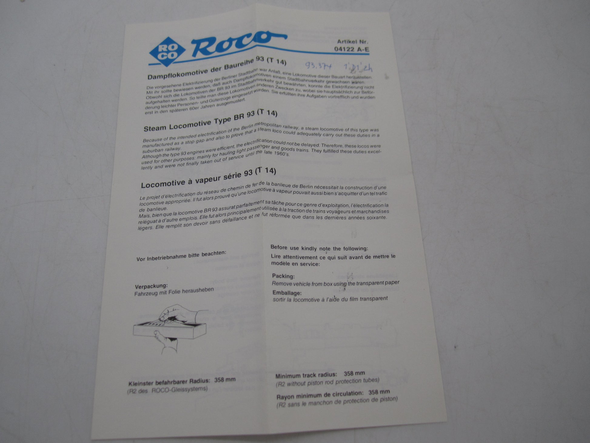 Roco H0 - 04122 A - Tenderloc, BR 93 van de DRG - Analoog
